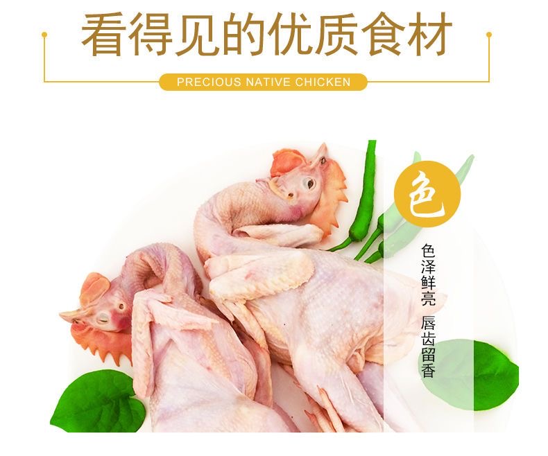 金寨土鸡特点说明:土鸡是散养的,所以土鸡的饮用水是附近山泉的水,吃的食物是周围的各种植物和小虫子,所以土鸡的营养价值比较高。主要表现在: